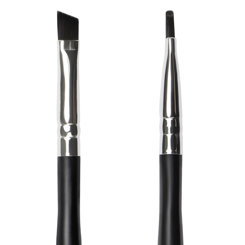 Скошенная синтетическая кисть позволяет добиваться идеальных линий и ровных границ. Используется для подводки в макияже глаз, для прорисовки бровей, окрашивания бровей краской и хной, для четкой прорисовки губ. Также можно успешно использовать как кисть для дизайна ногтей. Предназначена для нанесения сухих, гелевых, кремовых и прессованных текстур.